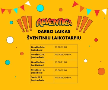 Vaikai iki 6 metų imtinai į pramogų erdvę įleidžiami tik su lydinčiuoju pilnamečiu asmeniu.