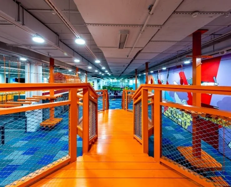 Labai smagu laipioti karstynėmis, kai lauke yra nuostabus oras. O ką daryti kai lyja, kai žvarbu, rudenį ar žiemą? Mes perkėlėme laipynes medžiuose, lauko žaidimus ir visą žaidimų aikštelę po stogu ir įrengėme 55 metrų laipynių ir karstyklių taką su 9 kliūčių ruožu: lipimas tinklu ore, beždžionių tiltas balansuojant „virš bedugnės“ su ore kabančiomis kliūtimis, trumpa poilsio stotelė, karstymasis pro labirintą, pusiausvyros takas, kopimas tinklu žemyn, aukščio tunelis, lynas ir kiti nuotykiai!